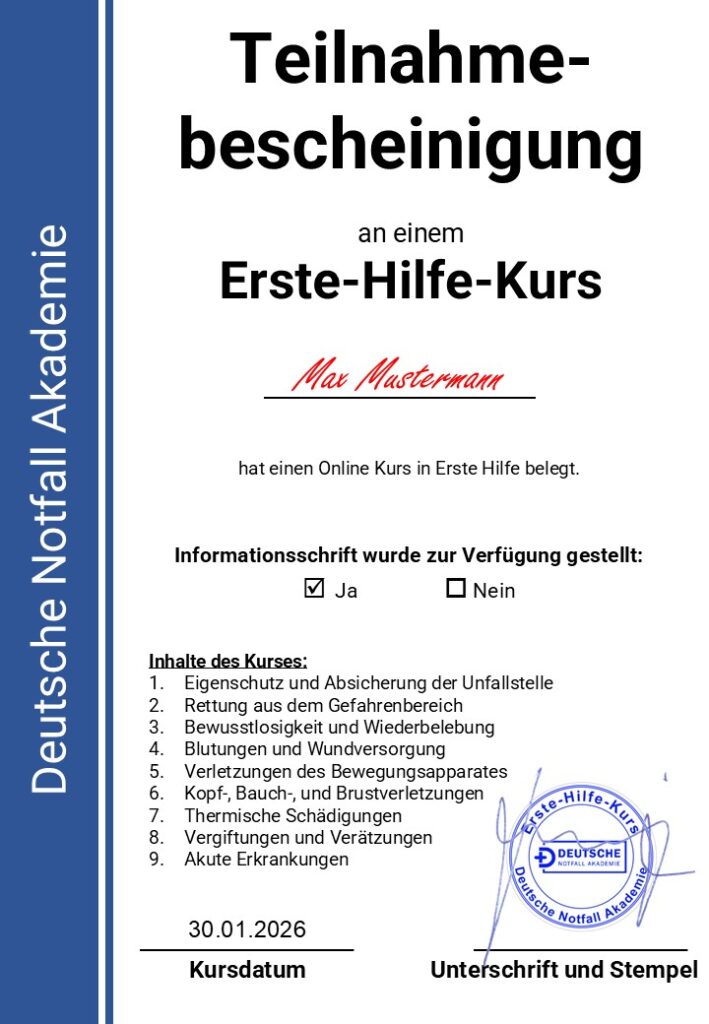inkl. vollständigem Erste-Hilfe-Kurs & personalisierter Teilnahmebescheinigung